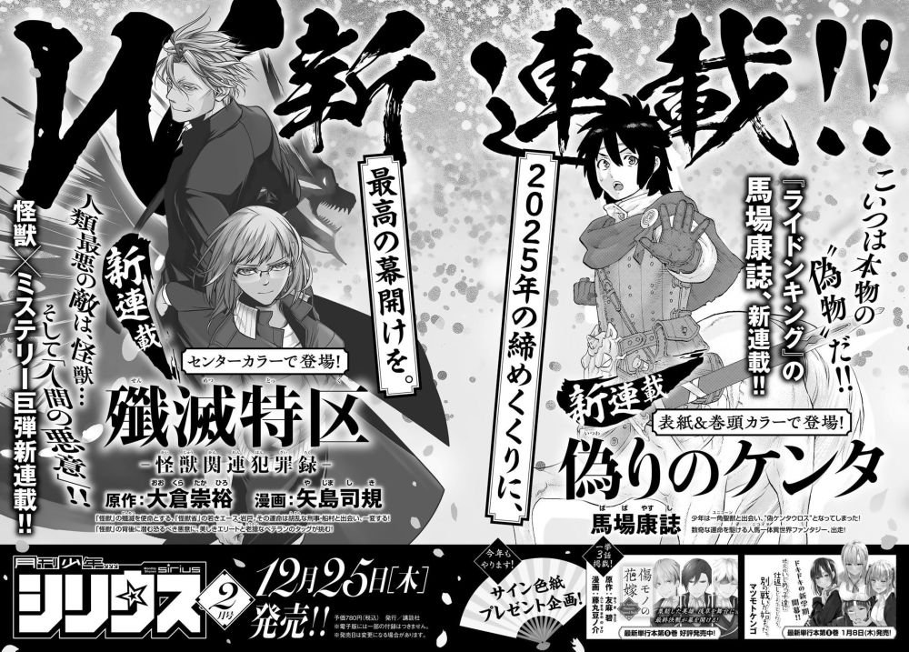 El número de enero de la revista Shonen Sirius ha anunciado que Yasushi Baba (The Ride-on King) estrenará una nueva serie en el próximo número, a la venta el 25 de diciembre.