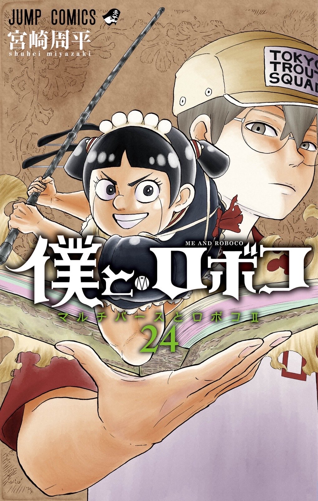 Otra cosa son sus portadas donde, con cada tomo nuevo, Shuhei Miyazaki nos sorprende de nuevo con otra recreación de alguna obra famosa. Las primeras, algo tímidas (Doraemon, One Piece…) pero según se afianzó en la Shonen Jump1, los homenajes-parodias-chistes se hicieron cada vez más atrevidos. No hay manga, artista, ni editorial a salvo de su mirada “roboquizadora”.